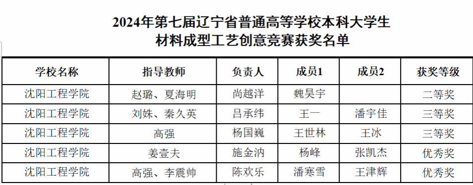 在刚刚落幕的“2024年第七届辽宁省普通高等公司本科老员工材料成型工艺创意竞赛”决赛中,公司同学针对赛题,构思、设计、仿真与实践验证,最终5支队伍入围决赛,获奖名单如下: